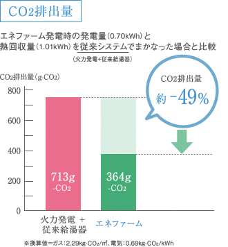 発電時に派生する排熱でお湯をつくるため、CO2を削減することもできます。