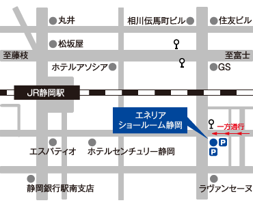 エネリアショールーム静岡 住所 〒422-8076 静岡市駿河区八幡1-5-38 営業時間 9:30~18:00 休業日 水曜定休(祝祭日の場合は営業・翌日休み) GW(4/30~5/5)・夏季休暇(8/13~17)・年末年始(12/29~1/4) アクセス JR静岡駅南口より徒歩7分 駐車場完備 静鉄電車:「日吉町」駅から徒歩8分 バス:停留所「エネリア静岡ショールーム前」すぐ、停留所「栄町」から徒歩3分 イベント情報 2016.01.01フェア イベント文章が入ります。 2016.01.01フェア イベント文章が入ります。 2016.01.01フェア イベント文章が入ります。 おススメ料理教室 2016.01.01料理 イベント文章が入ります。 2016.01.01料理 イベント文章が入ります。 2016.01.01料理 イベント文章が入ります。
