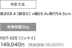 ふんわりカラッと乾かせるガス衣類乾燥機。