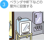ひさしなどがあり、真上から直接雨や水がかからない屋外に設置する場合は、排湿トップを使用してください。保護カバーの使用もおすすめします。