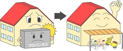 ボンベスペースが不要となり、駐車場、駐輪場、花壇などにスペースをご活用いただいております。