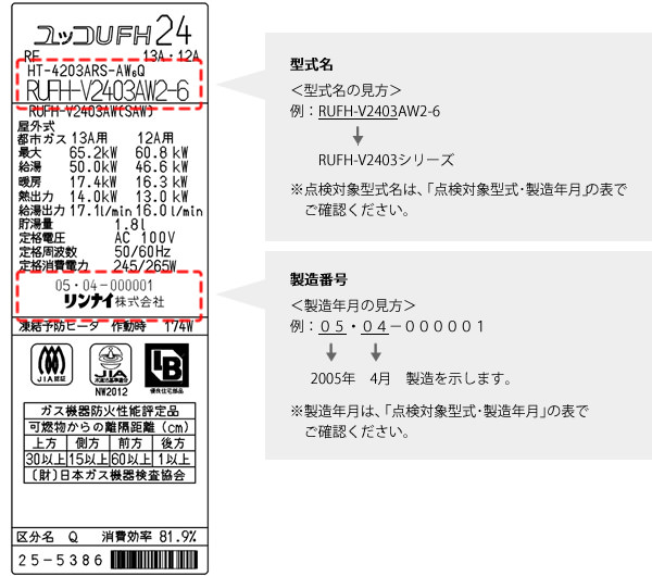 - 対象製品の設置が確認されているお客さまには、リンナイ株式会社よりダイレクトメールを発送し、無償点検・修理作業等についてお知らせいたします。