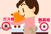 - 屋外でガスのにおいがする場合は、窓や戸を閉めガスが室内に入らないようにしてください。必要に応じてご近所にも注意を呼びかけて、避難誘導をお願いします。
